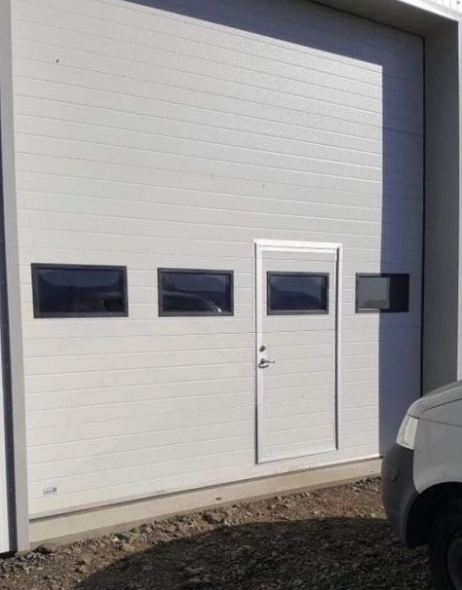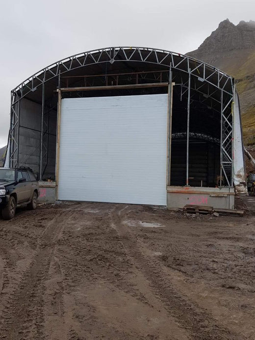 Starfsmenn okkar settu upp 36 fermetra hurð í verkstæðisskýli við Dýrafjarðargöng.